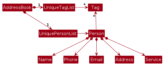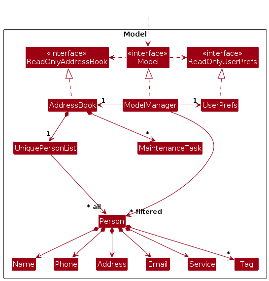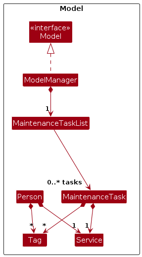 MaintenanceTask objects added by the user.MaintenanceTask holds a reference to the contractor's Tag set and Service, inherited at the time of task creation.ModelManager and accessed via the Model interface.API : Storage.java