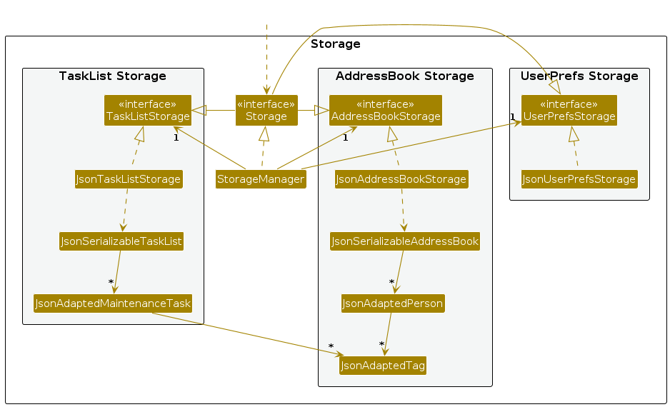 AddressBookStorage and UserPrefStorage, which means it can be treated as either one (if only the functionality of only one is needed).Model component (because the Storage component's job is to save/retrieve objects that belong to the Model)Classes used by multiple components are in the seedu.address.commons package.